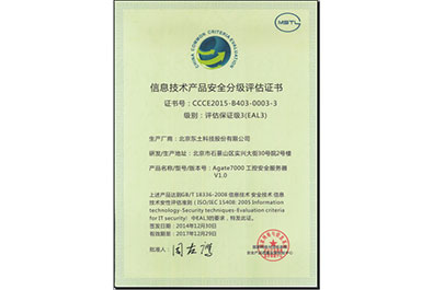 18新利科技Agate7000系列工控清静服务器V1.0正式通过国家网络与信息系统清静产品质量磨练中心分级评估EAL3+级清静评测和专家验收,,,,,并获得《信息手艺产品清静分级评估证书,,,,,级别:EAL3》。。。。。。该级别的测评是现在为止海内同类产品中的最高清静级别,,,,, EAL3级认证是国